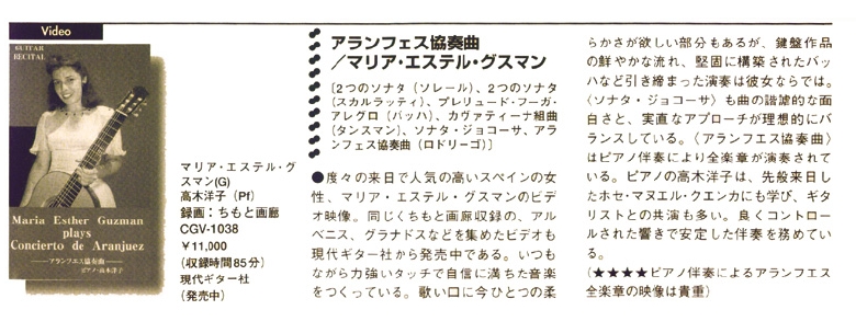 まだビデオ・デッキをお持ちの方は、是非マリア・エステルさんの華麗な指さばきと美しい映像をお楽しみいただき、私との演奏もご覧になられて下さい。新品がまだ手元に何本かあり、お分けできますので、ご希望の方はメッセージ下さい。定価はかなり高額ですが、割引価格にてお送りさせて頂きます。お問い合わせください。